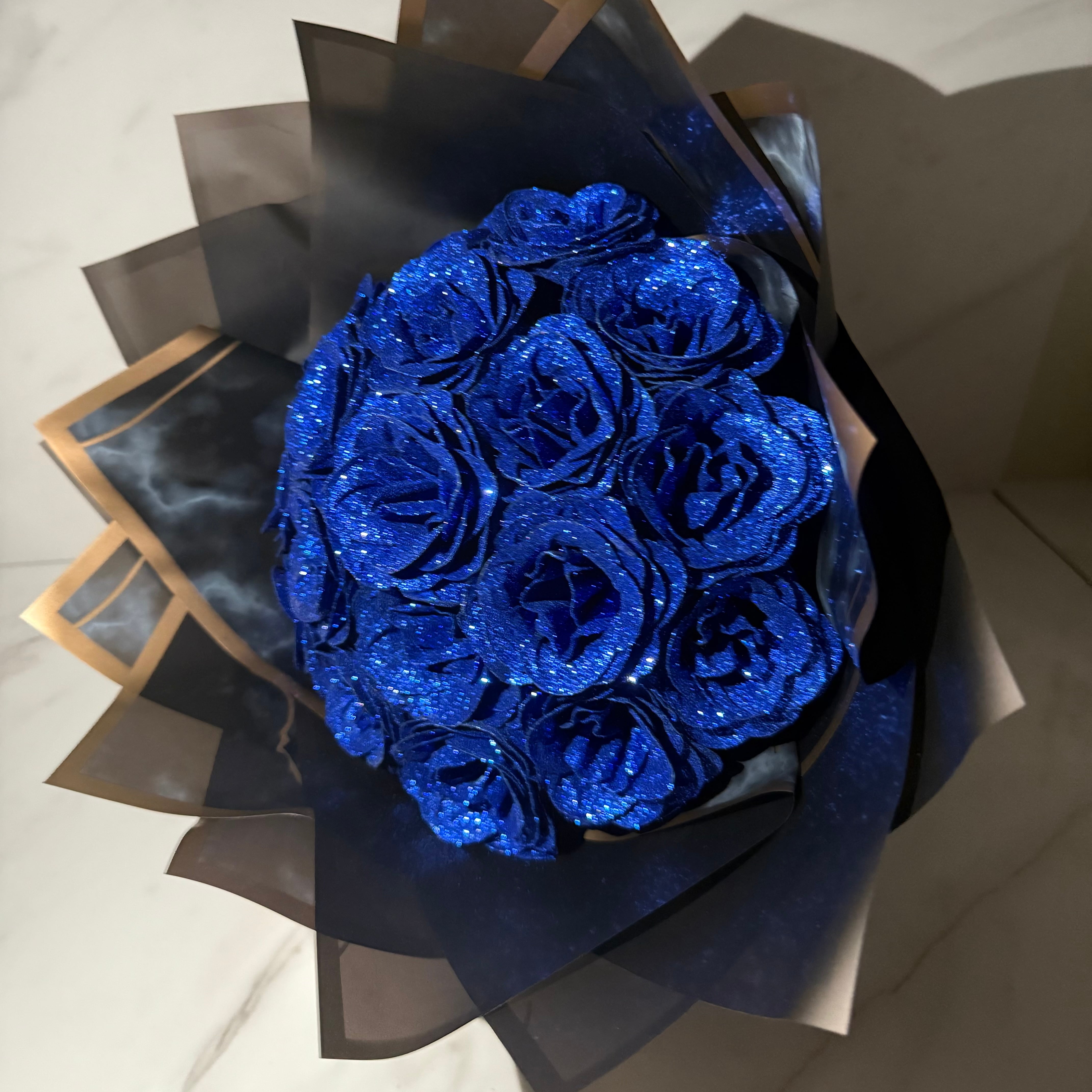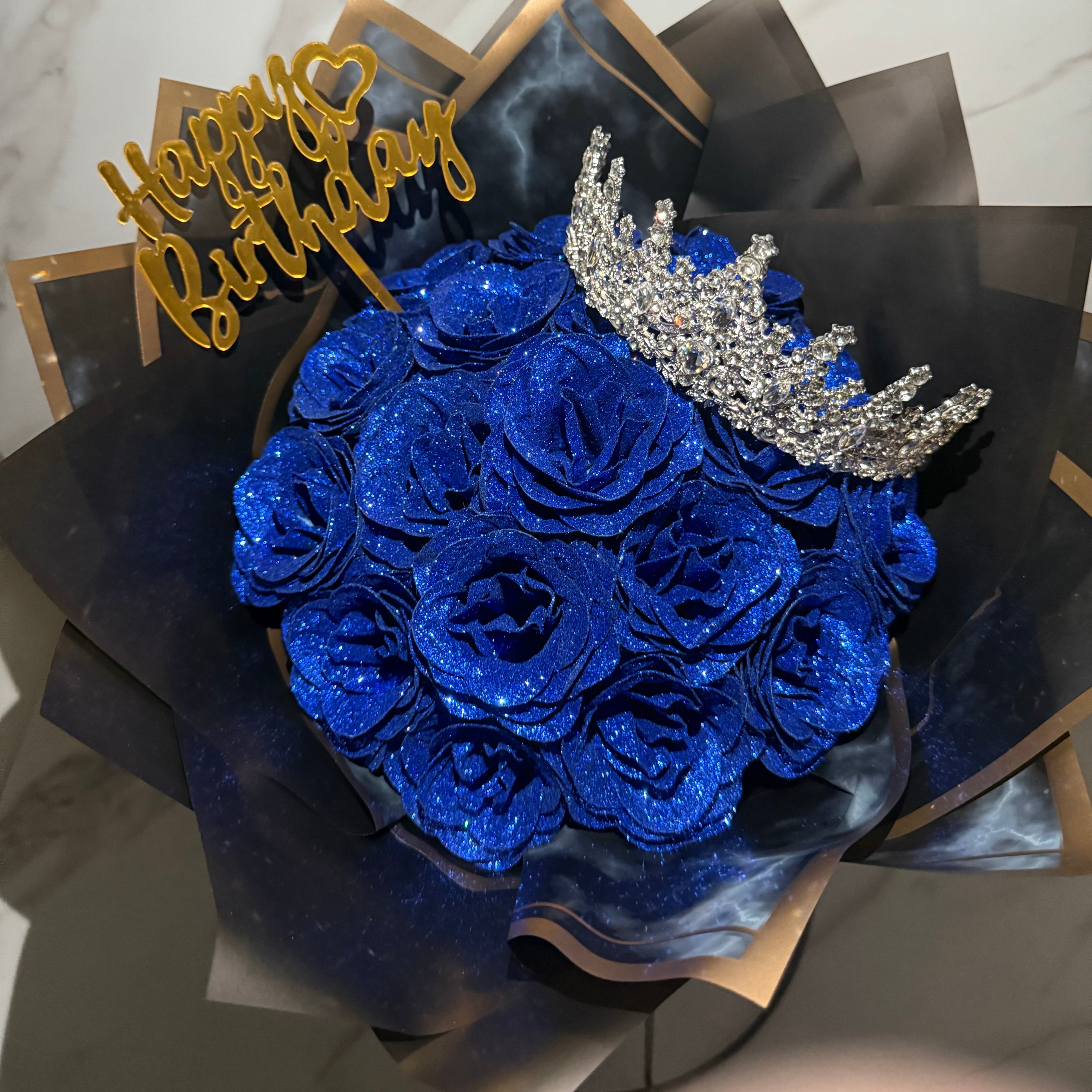 【Blue/ブルー】Glitter roes bouquet ブーケ 花束18本