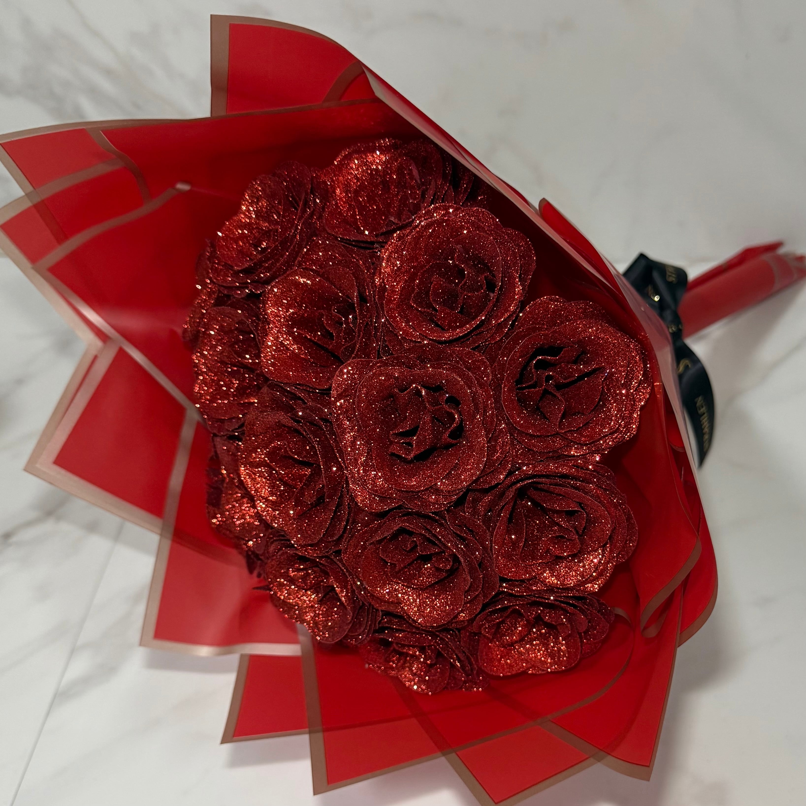 心に残る特別な瞬間を彩る、グリッタークリスタルラメが装飾されたこの薔薇は、シュトラーレンならではのオリジナルで、細部までこだわり抜いた商品はもはや芸術とも呼べる、心に響く贈り物として、きっと永遠に残る思い出となることでしょう。