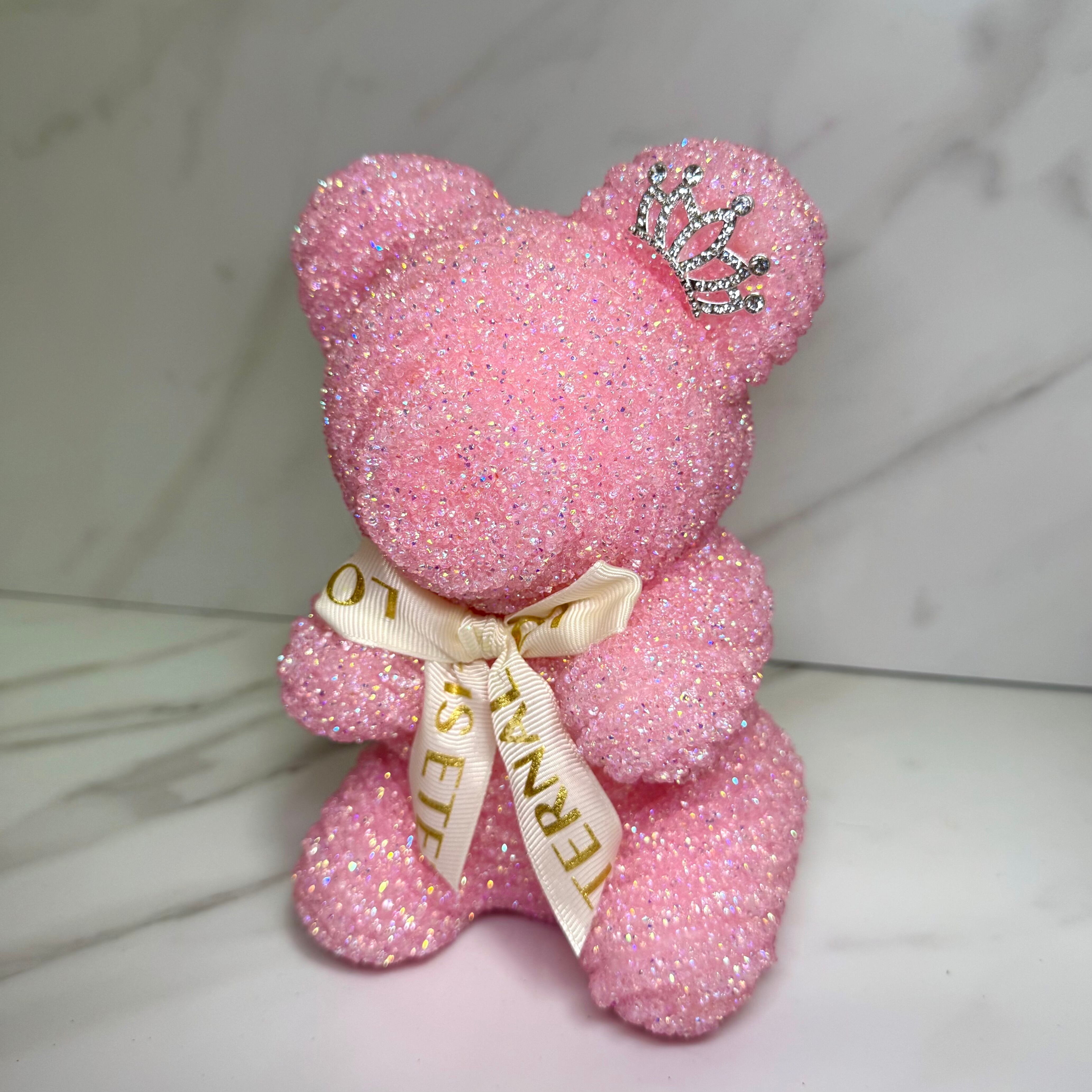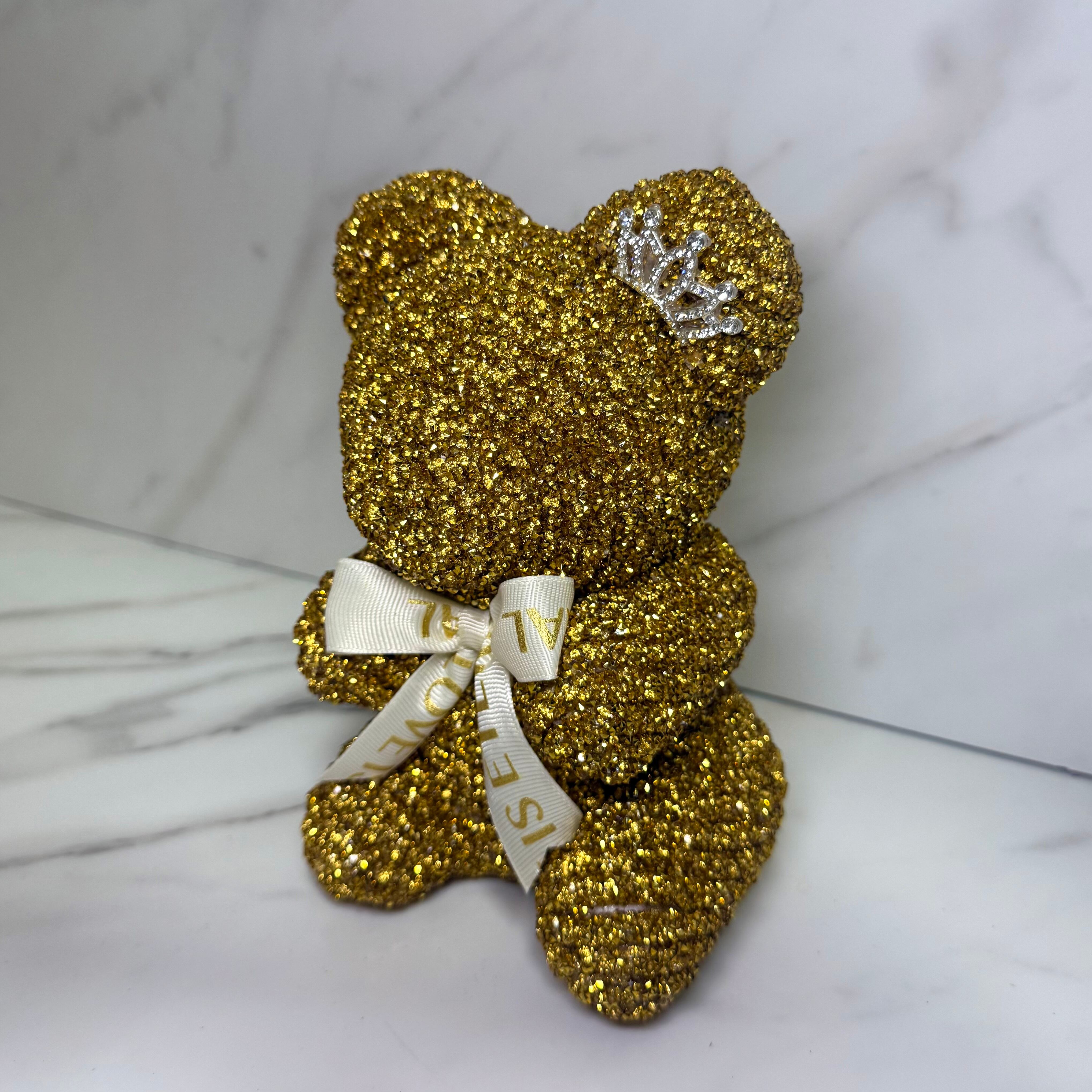ラグジュアリーな輝きを放つ「グリッターベアー」は、全身に散りばめられたギラギラのジュエリーが圧倒的な存在感を放つ、特別なクマの置物です。