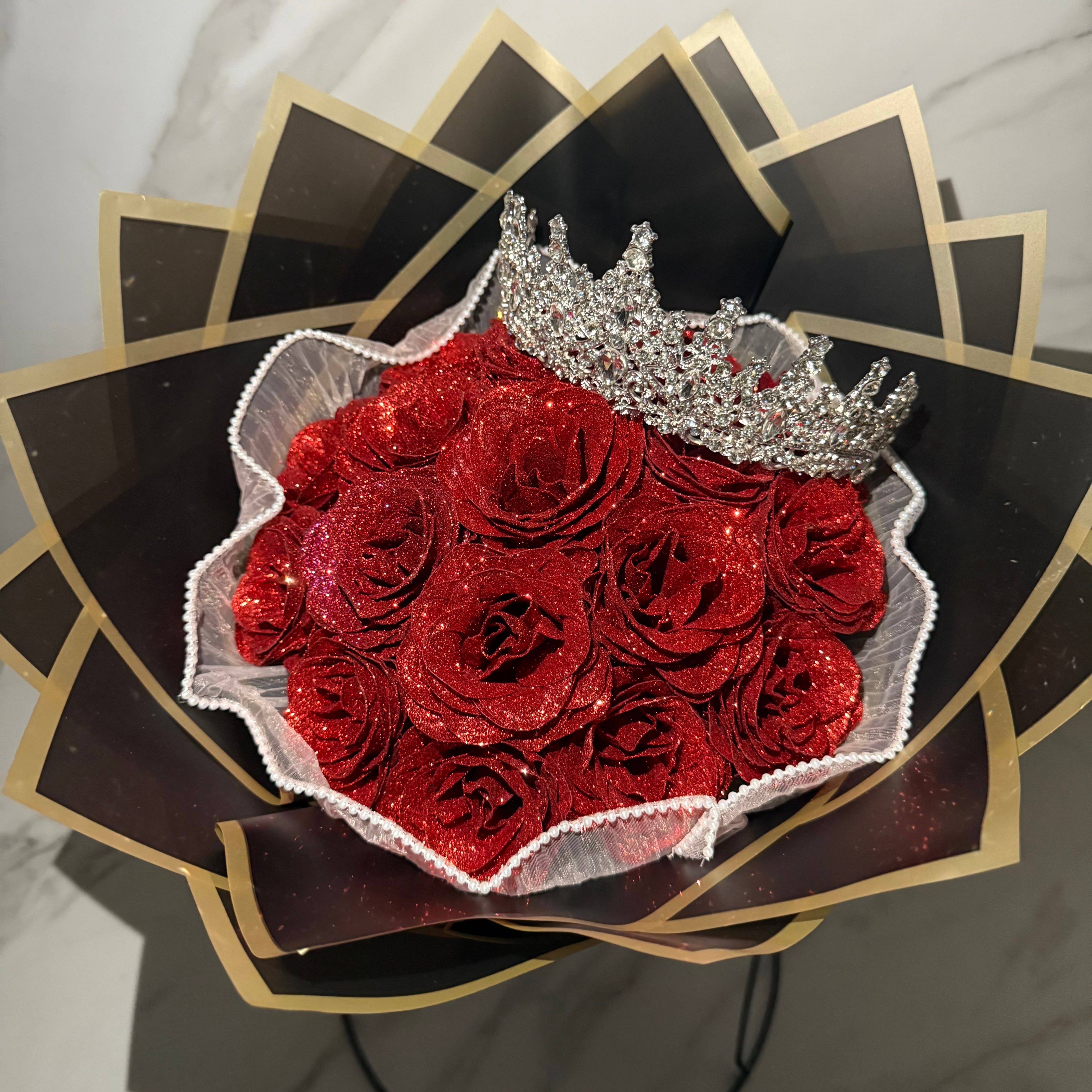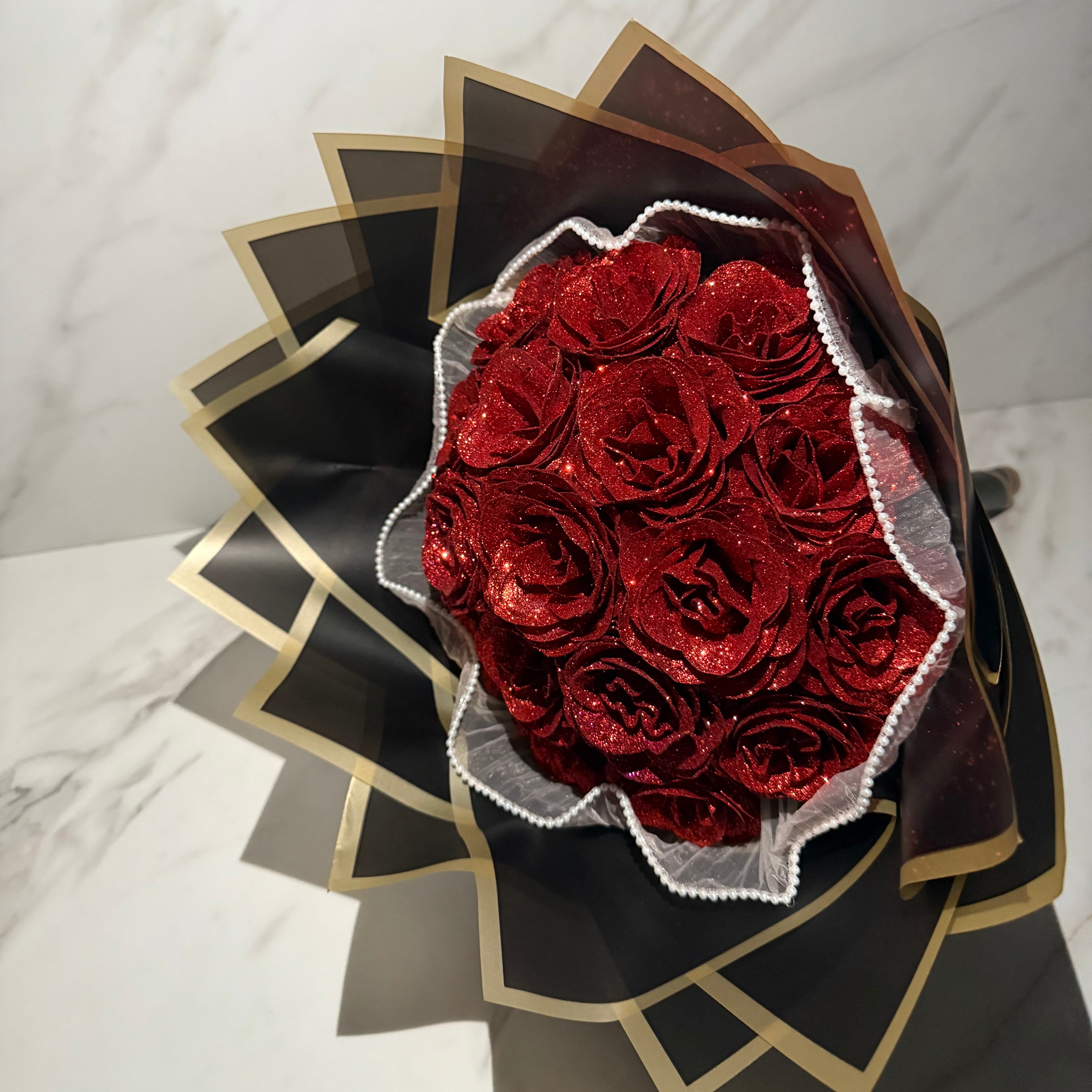 【Red/レッド】Glitter roes bouquet ブーケ 花束18本